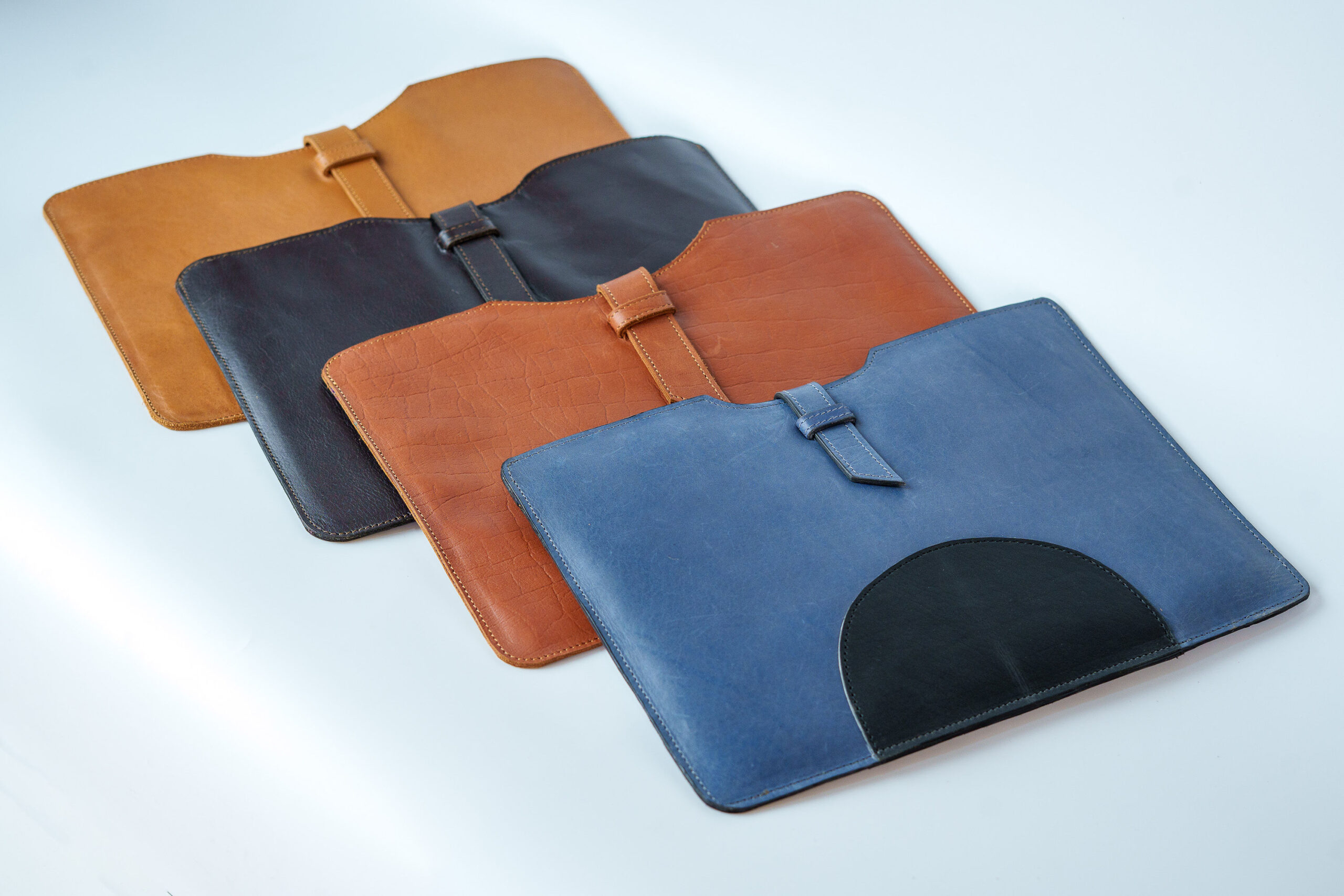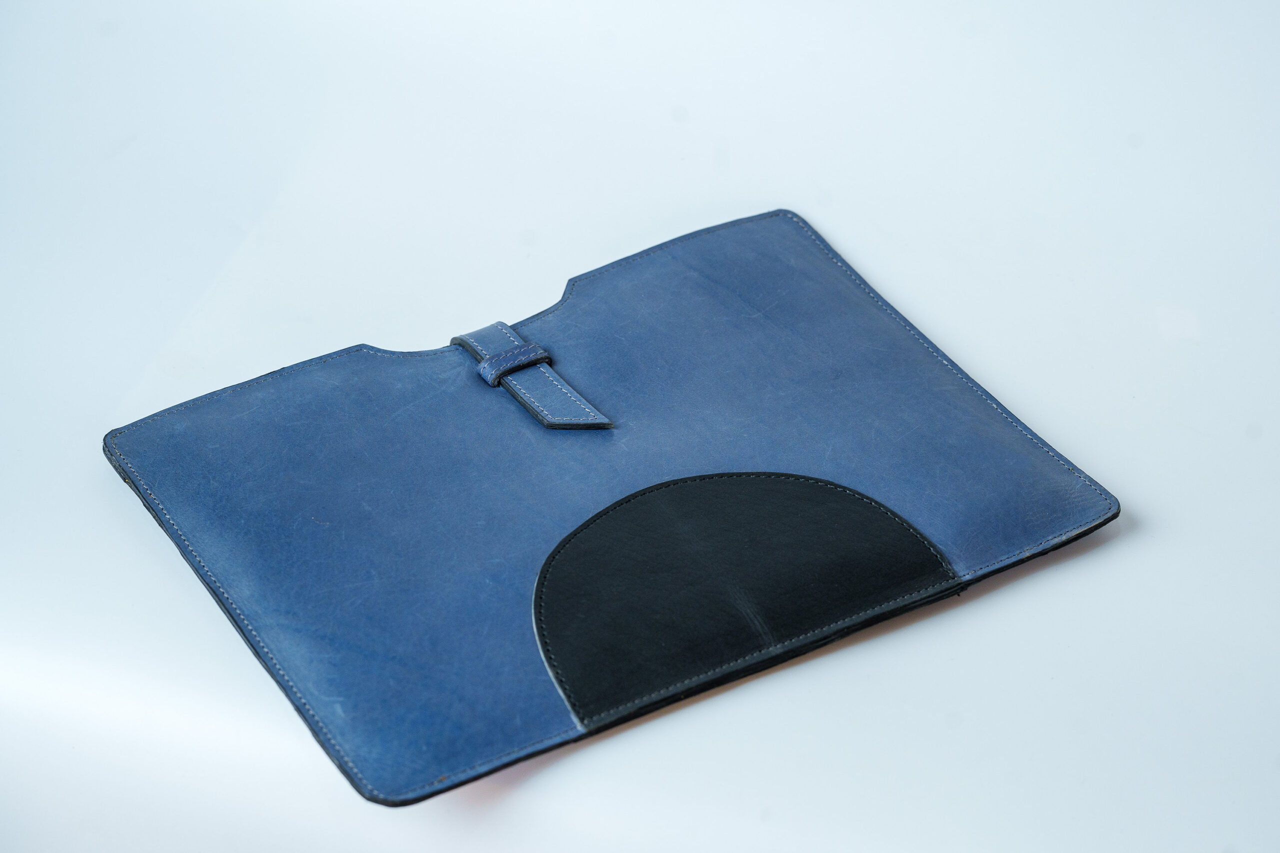 The matte leather picks up marks and oils from your hands, developing a dark, polished look over time.