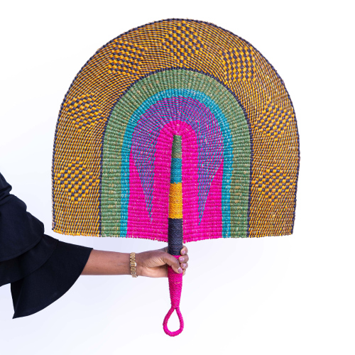 Artfully handwoven from natural straw or palm fibres, this striking fan blends practical elegance with decorative flair. The broad, rounded shape offers generous coverage when in use, and when displayed, it transforms any wall into a focal point of texture and organic beauty.